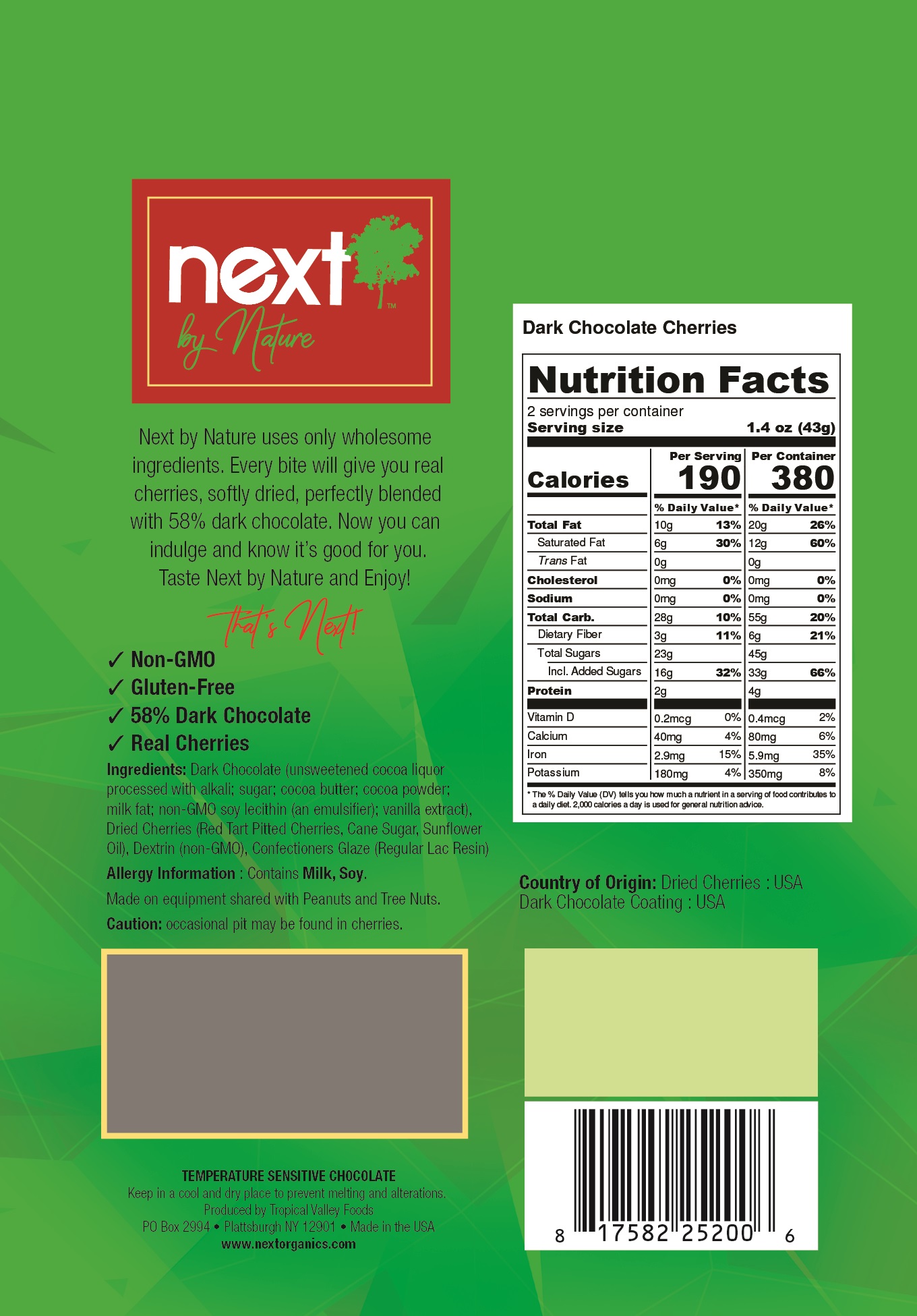 - ALL ORGANIC – This natural alternative to other chocolate covered snacks, dark chocolate Cherries are made of all natural ingredients. Dark chocolate is an antioxidant and gives this treat a semi-sweet kick.